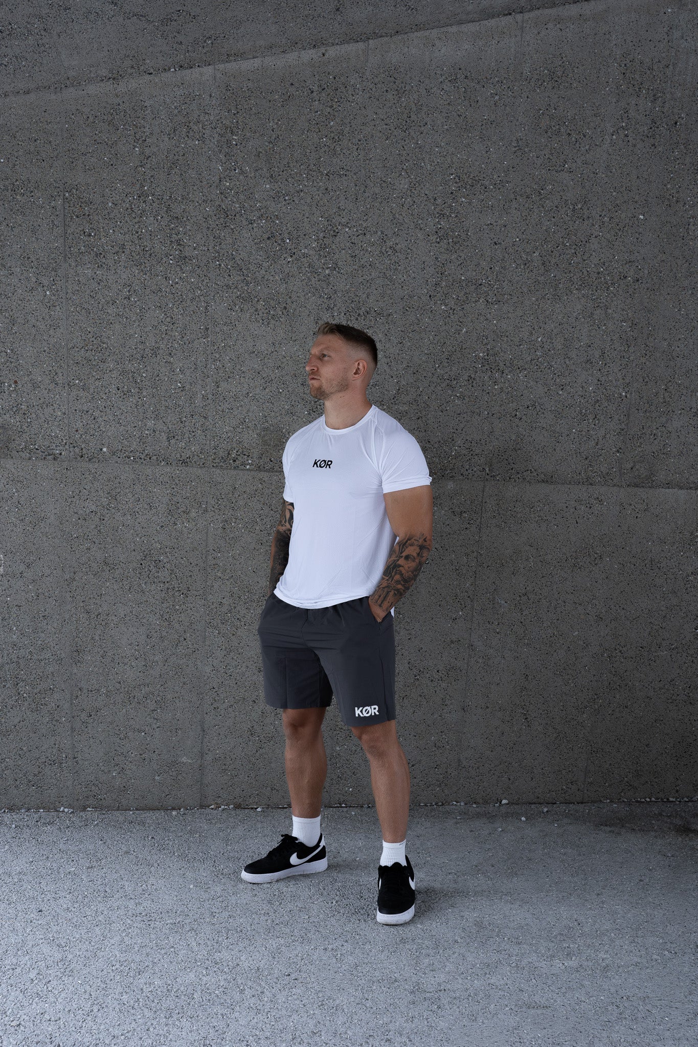 Das schlichte, moderne White-Design wird durch das dezente KØR-Logo auf der Brust sowie ein markantes Design auf dem Rücken ergänzt – minimalistisch, stark und vielseitig kombinierbar.