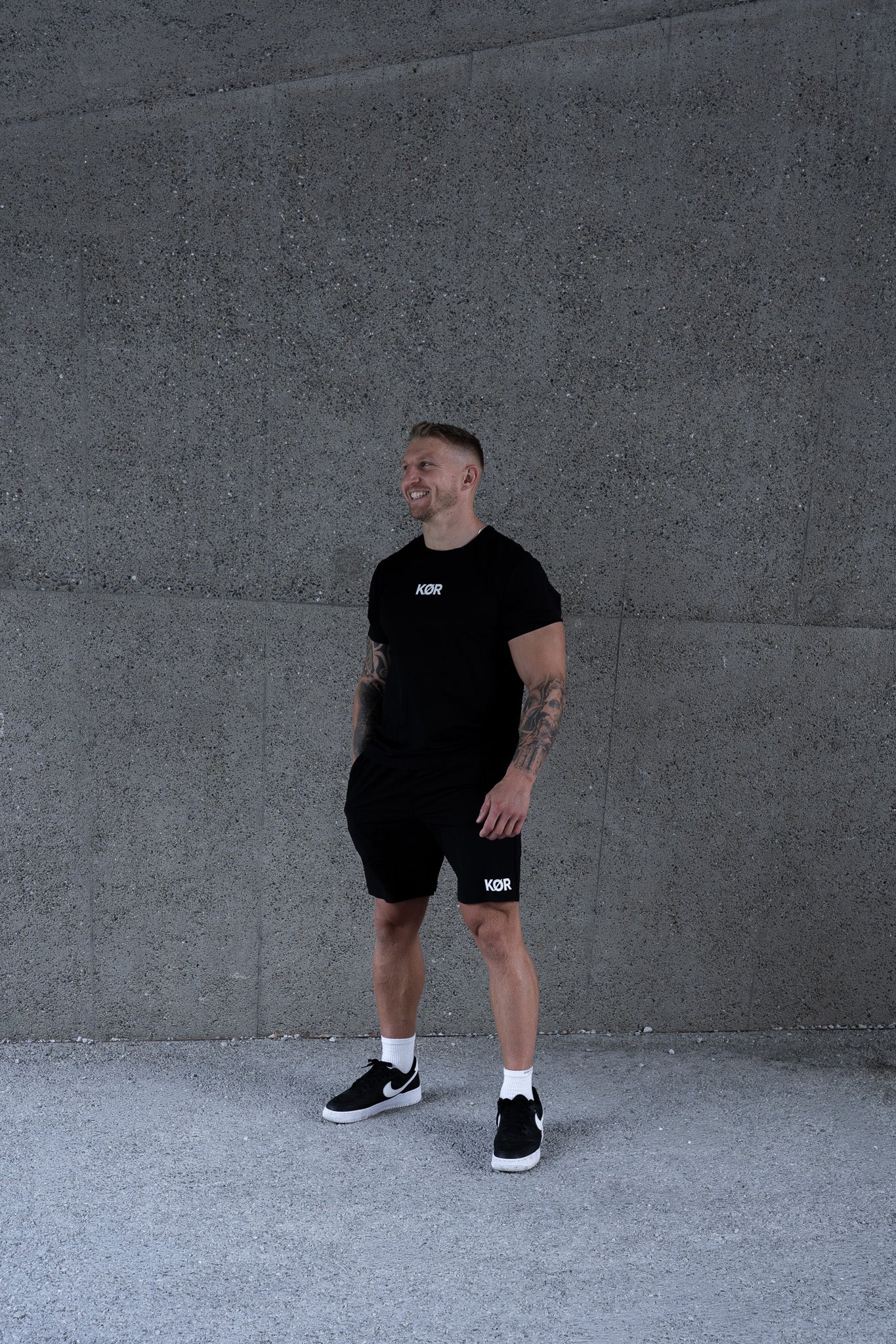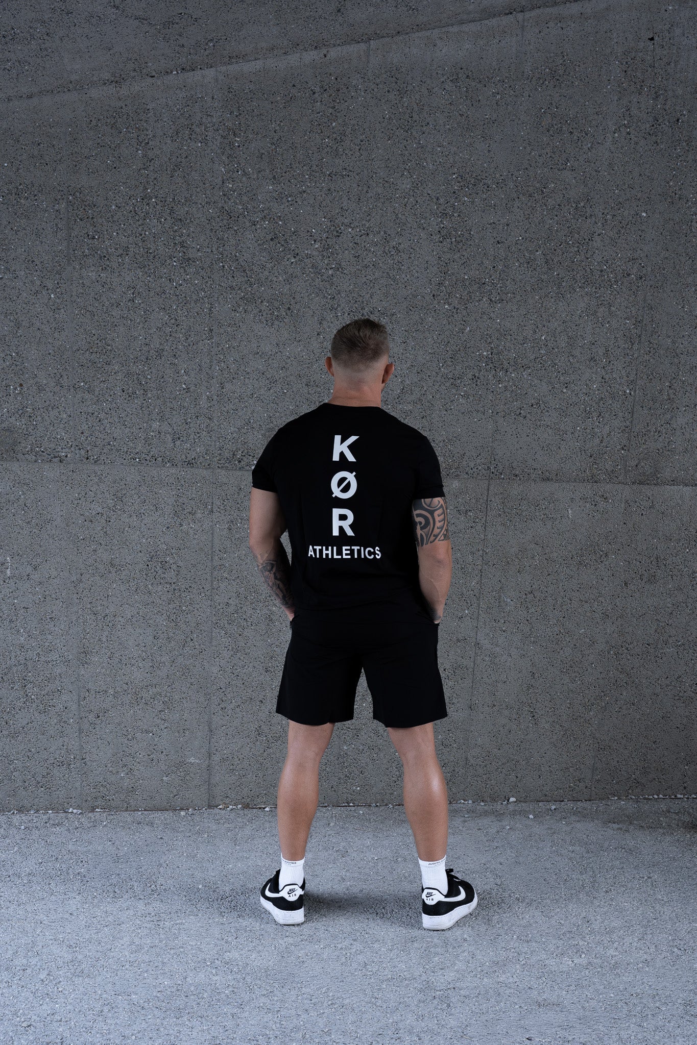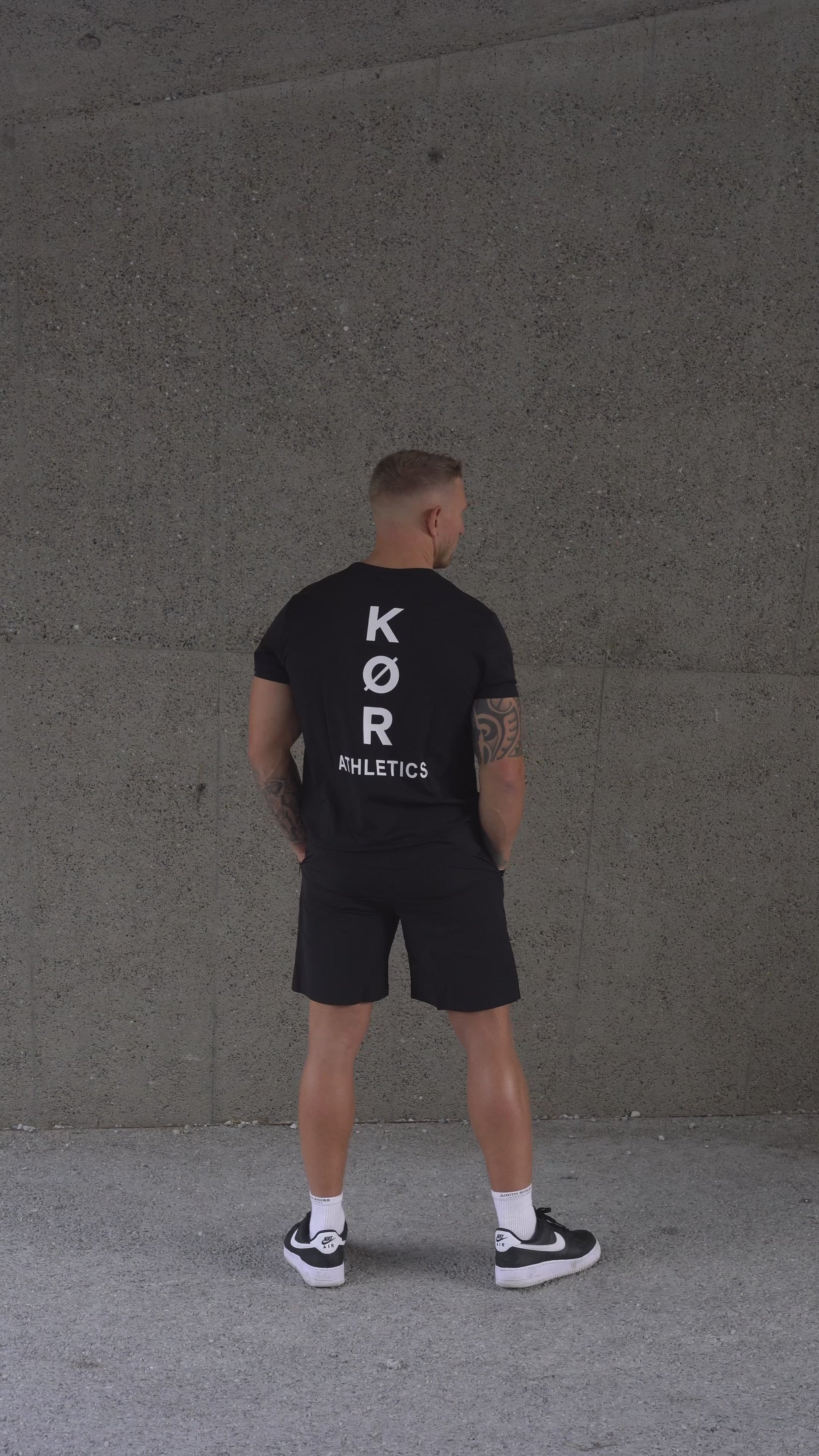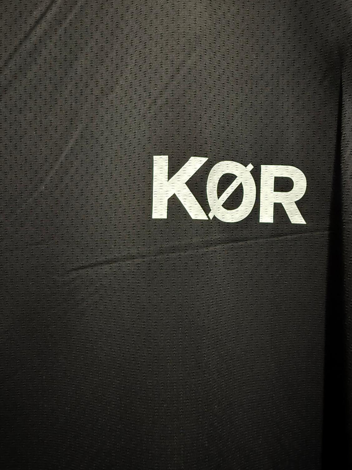Das schlichte, moderne Black-Design wird durch das dezente KØR-Logo auf der Brust sowie ein markantes Design auf dem Rücken abgerundet – ein klarer Ausdruck von Stärke und Dynamik.